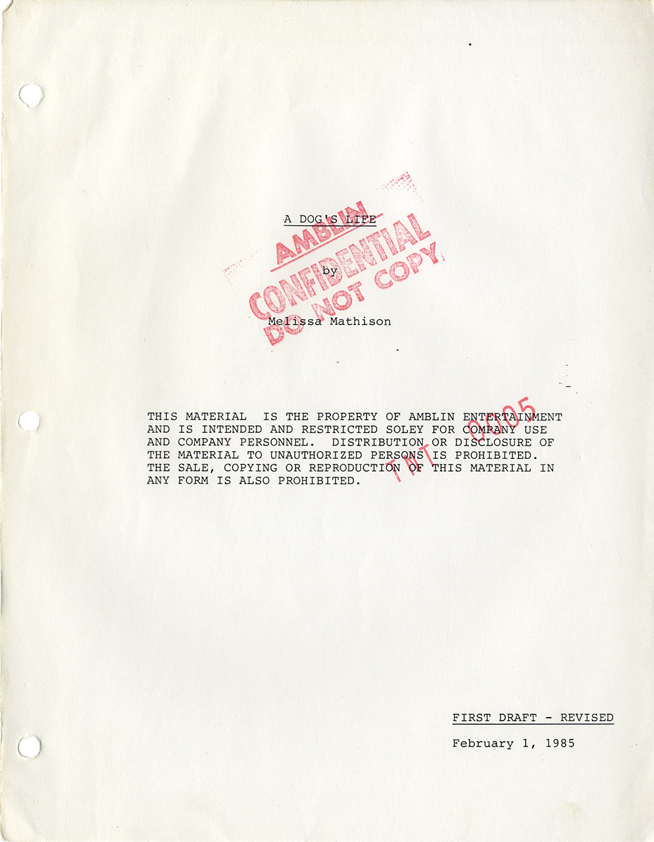 Steven Spielberg (producer, director) A DOG’S LIFE [TIN TIN] (Feb 1, 1985) First Draft-Revised film script